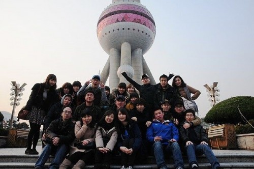 상하이의 대표 탑인 동방명주탑 앞에서 찰칵!