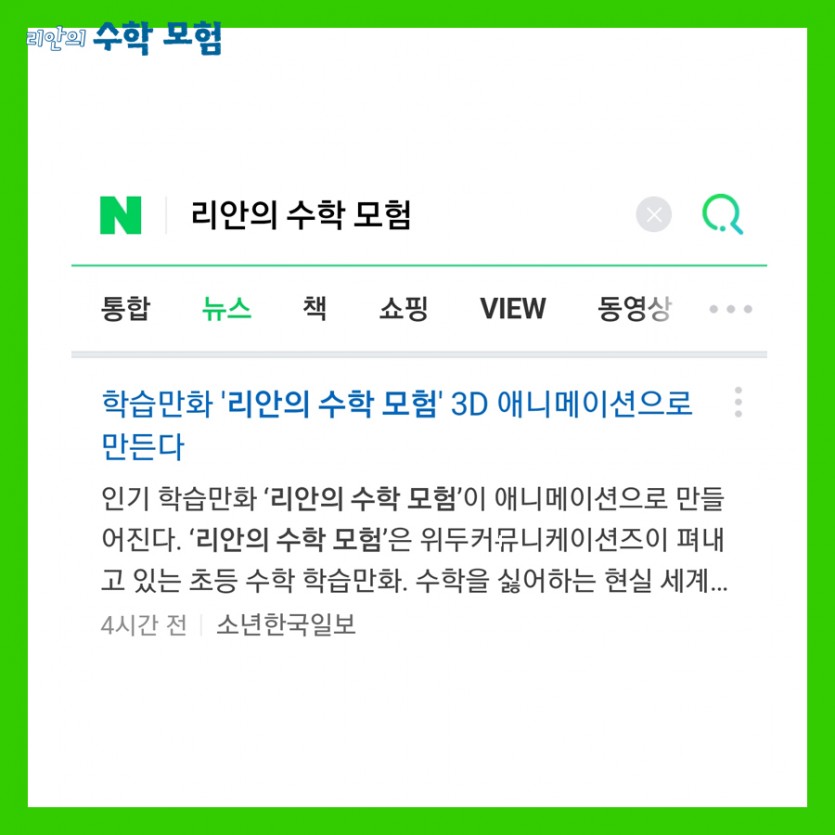 소년 한국일보에 애니메이션 '리안의 수학 모험'과 관련된 기사가 실렸어요 :)