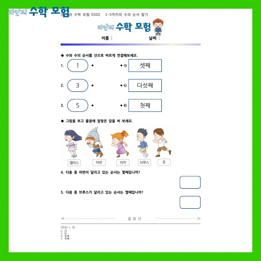 초등수학 학습만화 '리안의 수학 모험' 블로그에서 초등 수학 학습지를 무료로 제공해드려요 :)